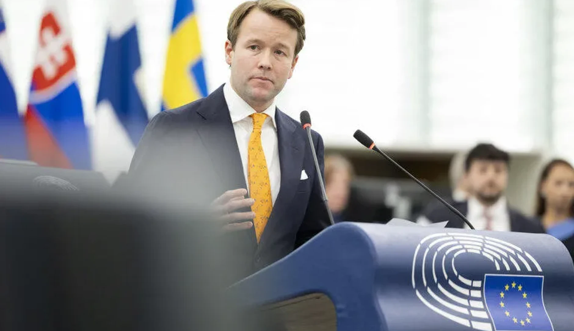 Reinier van Lanschot , un des 5 députés Volt élus au Parlement européen explique le plan de défense élaboré par Volt et ses partenaires.