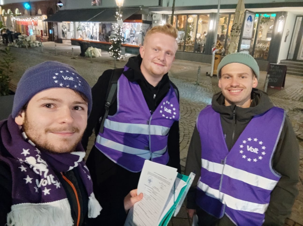 Nous accompagnons les membres de Volt Allemagne dans leur quête, dans toutes les villes frontalières où nous avons des candidats, démontrant ainsi la vocation européenne transfrontalière de Volt, et notre solidarité.